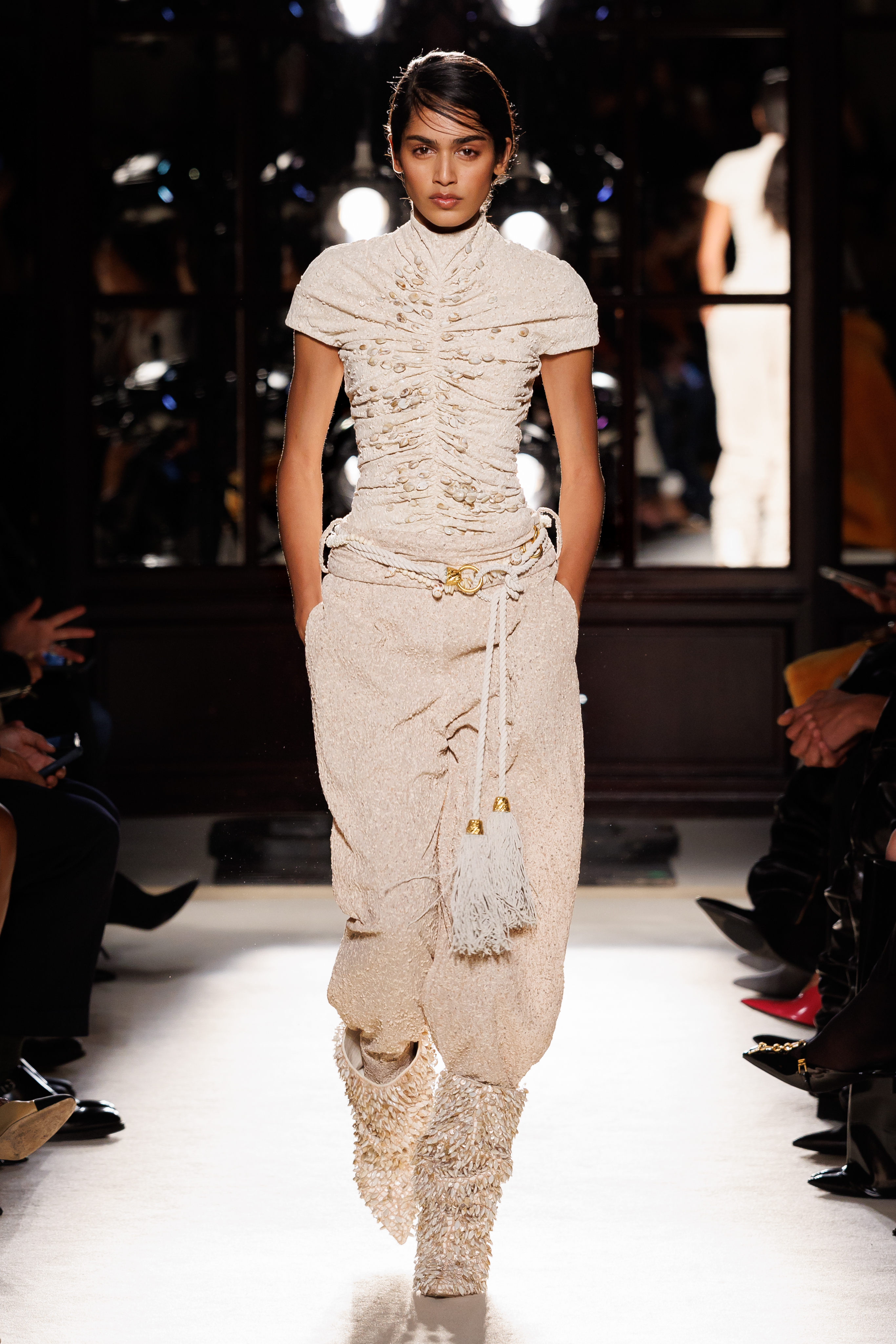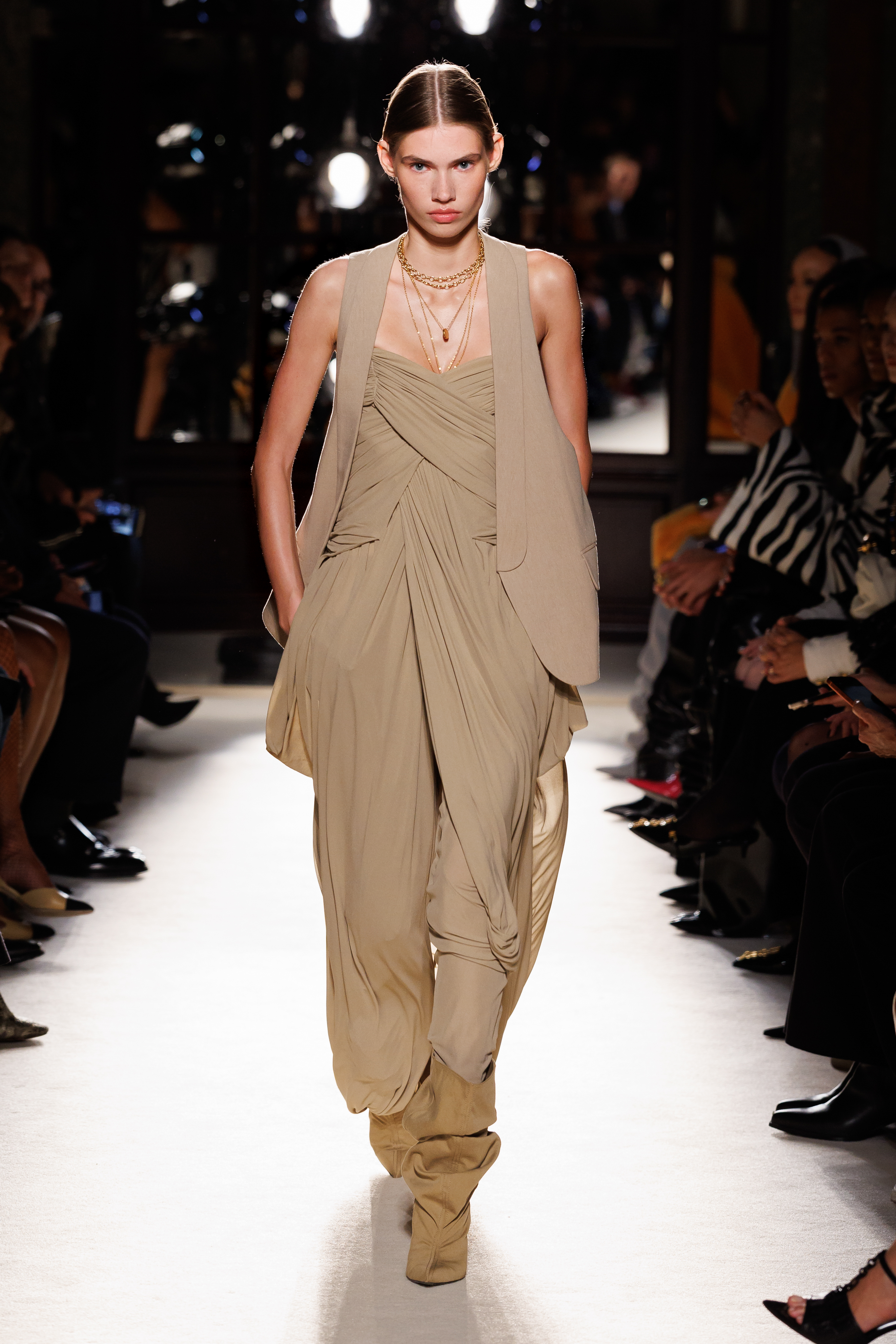 For this new collection, Olivier ROUSTEING drew inspiration from his own personal journey and evolution, which he describes as a "Continuum", an unbroken thread between his aesthetic and the heritage of Balmain. His imagination goes back to a childhood spent by the sea, where he dreamed of creating freely, in a spirit of lightness, joy and harmony. This energy is reflected in the collection in colours that evoke the beach and nature (sand, driftwood, coral, oasis), as well as in materials and cuts that are fluid, airy and feminine, embodying freedom, movement and authenticity.